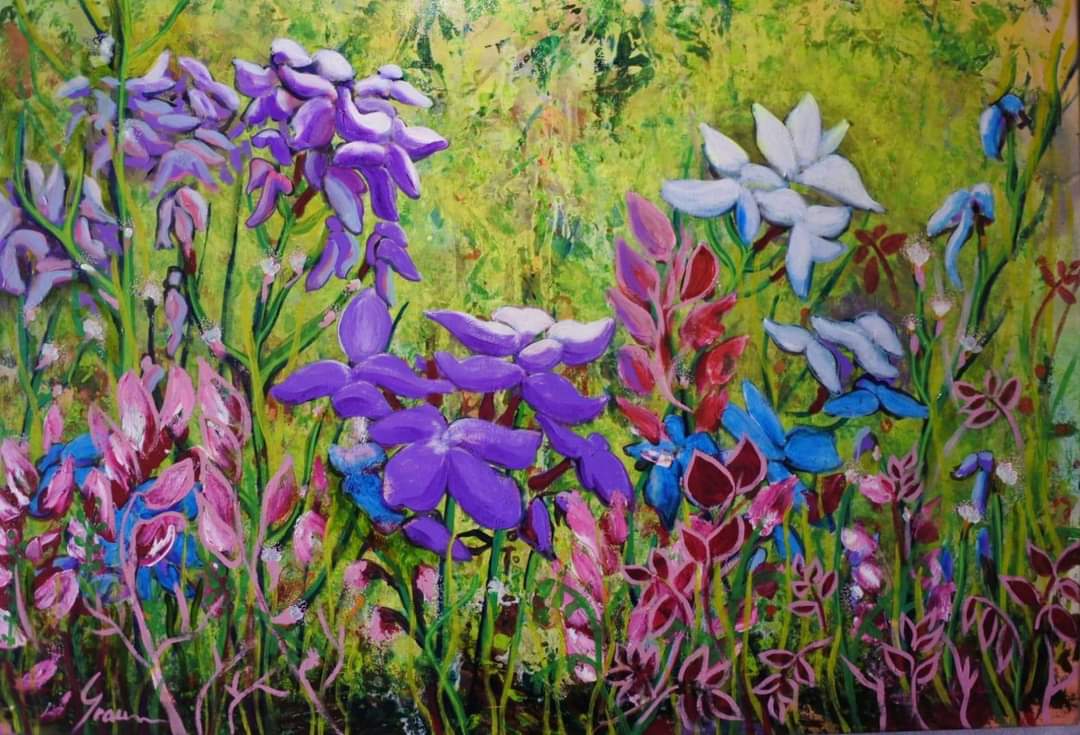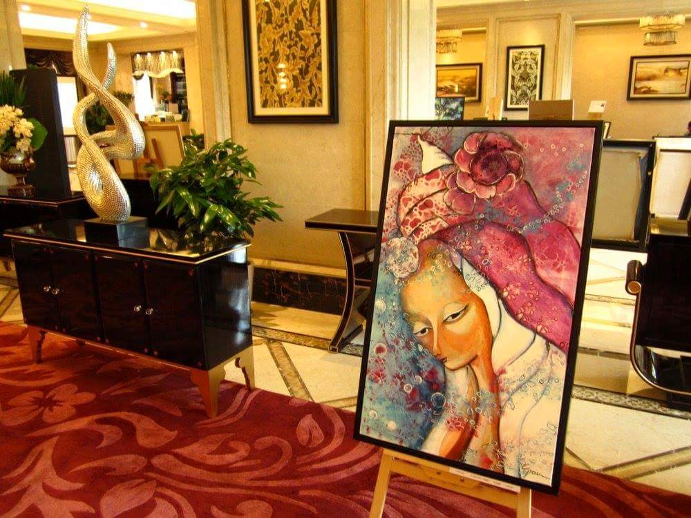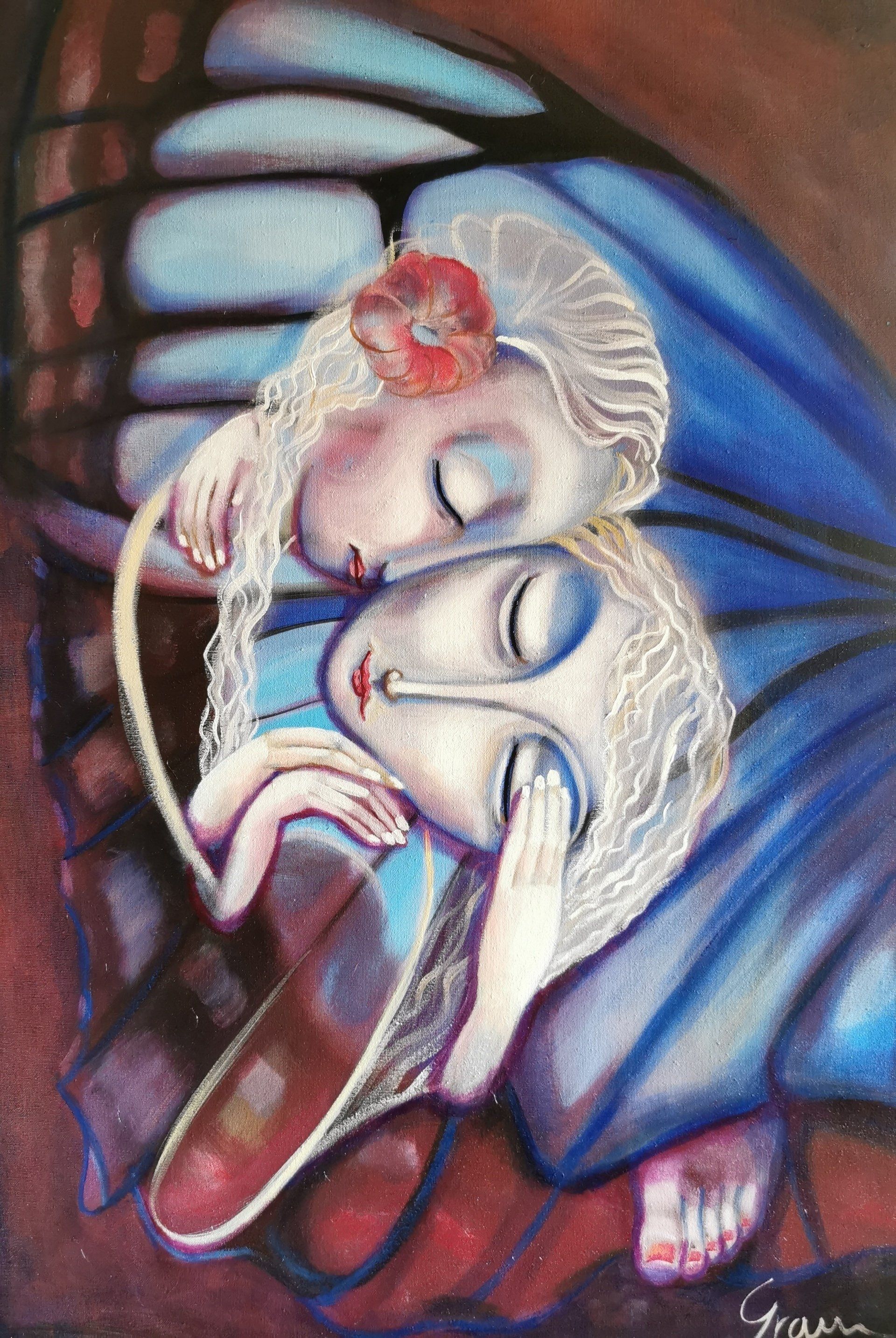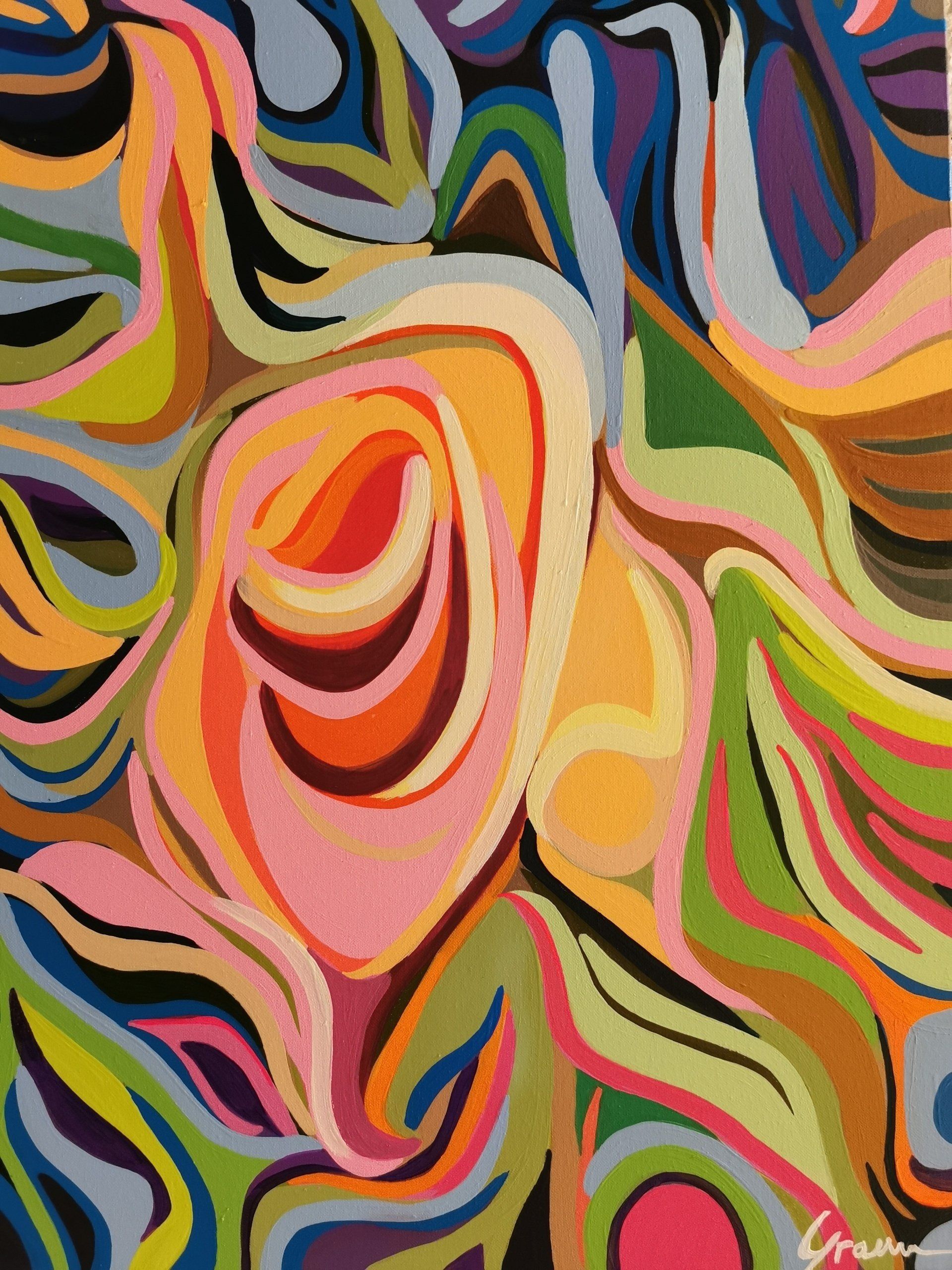Per trobar-la ens hem de dirigir fins al Vendrell. Poc abans de la pandèmia va instal·lar el seu estudi a una casa cedida per un amic. L’immoble portava tancat més de trenta anys i ara s’ha convertit en un espai ple de vida, amb centenars de pinzells i gammes de colors vius a tort i a dret. Ben segur que el llimoner situat a l’exterior és una gran font d’inspiració. Aquí el temps s’atura i xoca amb la incansable pluja d’idees que constantment brolla de l’artista, dia i nit. La primera confessió: “m’encanta pintar descalça, així que qualsevol catifa que trobo es converteix en part de l’estudi”.