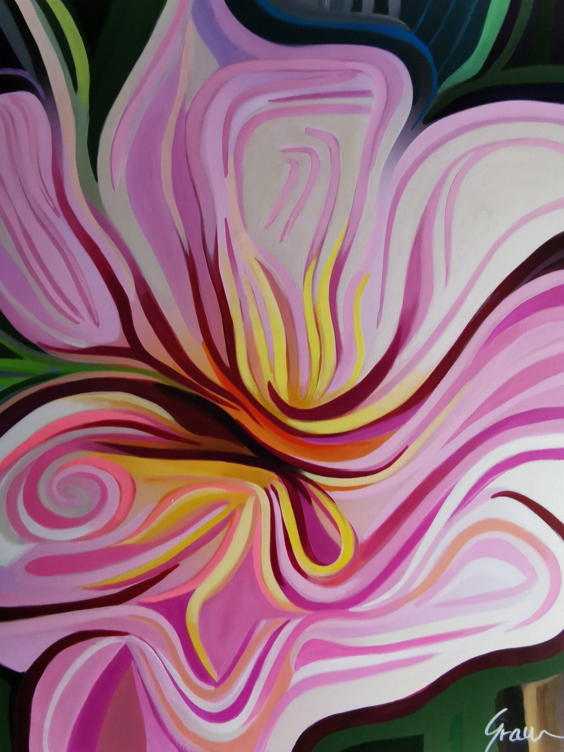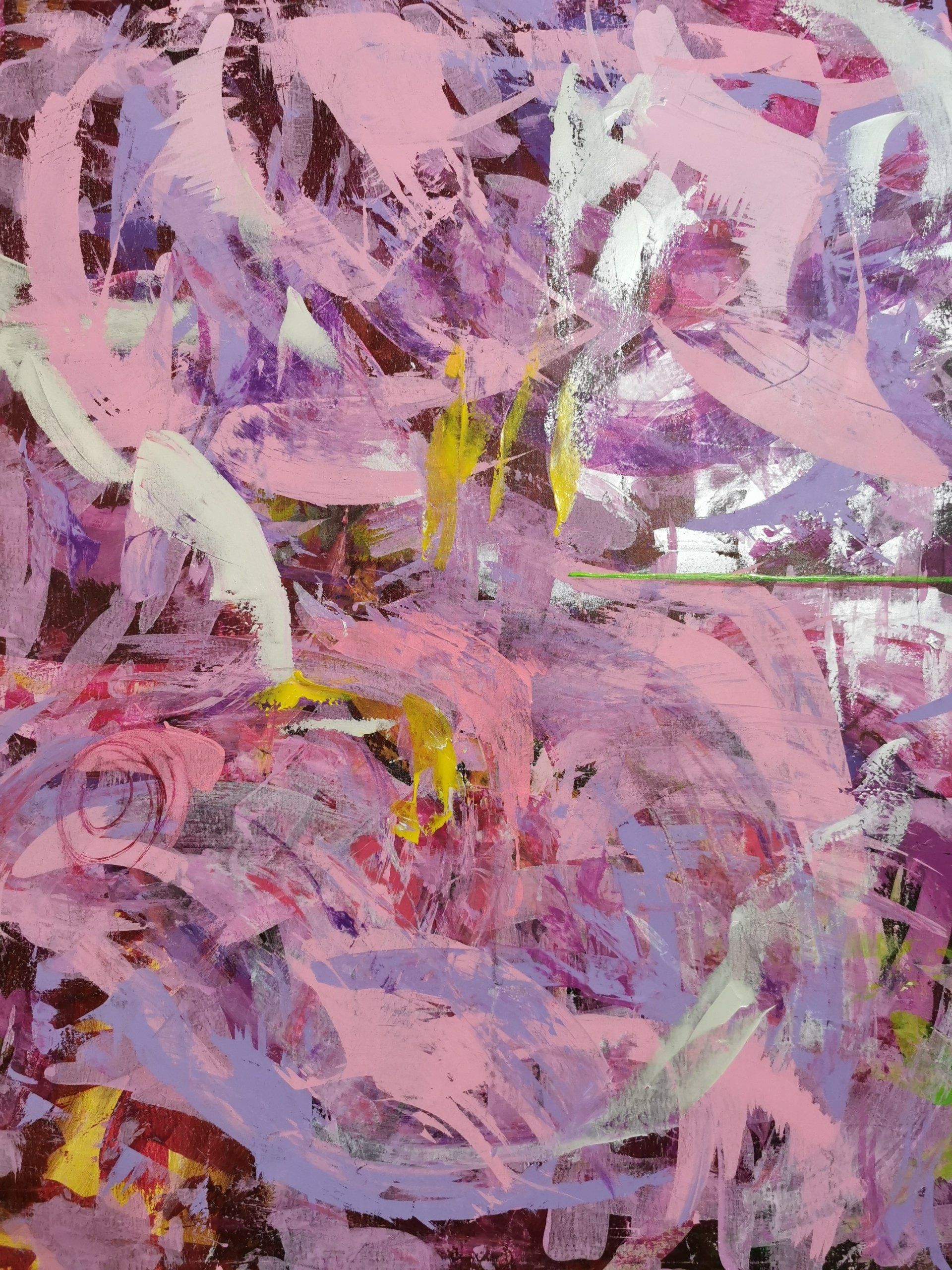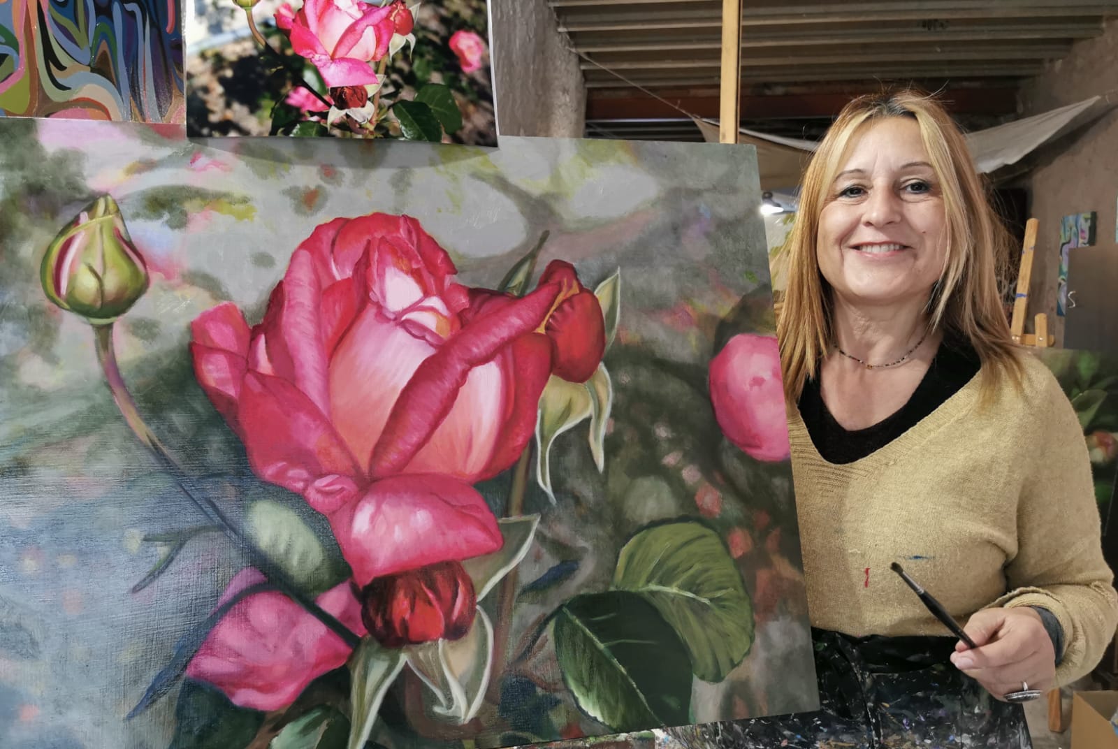 Per trobar-la ens hem de dirigir fins al Vendrell. Poc abans de la pandèmia va instal·lar el seu estudi a una casa cedida per un amic. L’immoble portava tancat més de trenta anys i ara s’ha convertit en un espai ple de vida, amb centenars de pinzells i gammes de colors vius a tort i a dret. Ben segur que el llimoner situat a l’exterior és una gran font d’inspiració. Aquí el temps s’atura i xoca amb la incansable pluja d’idees que constantment brolla de l’artista, dia i nit. La primera confessió: “m’encanta pintar descalça, així que qualsevol catifa que trobo es converteix en part de l’estudi”.