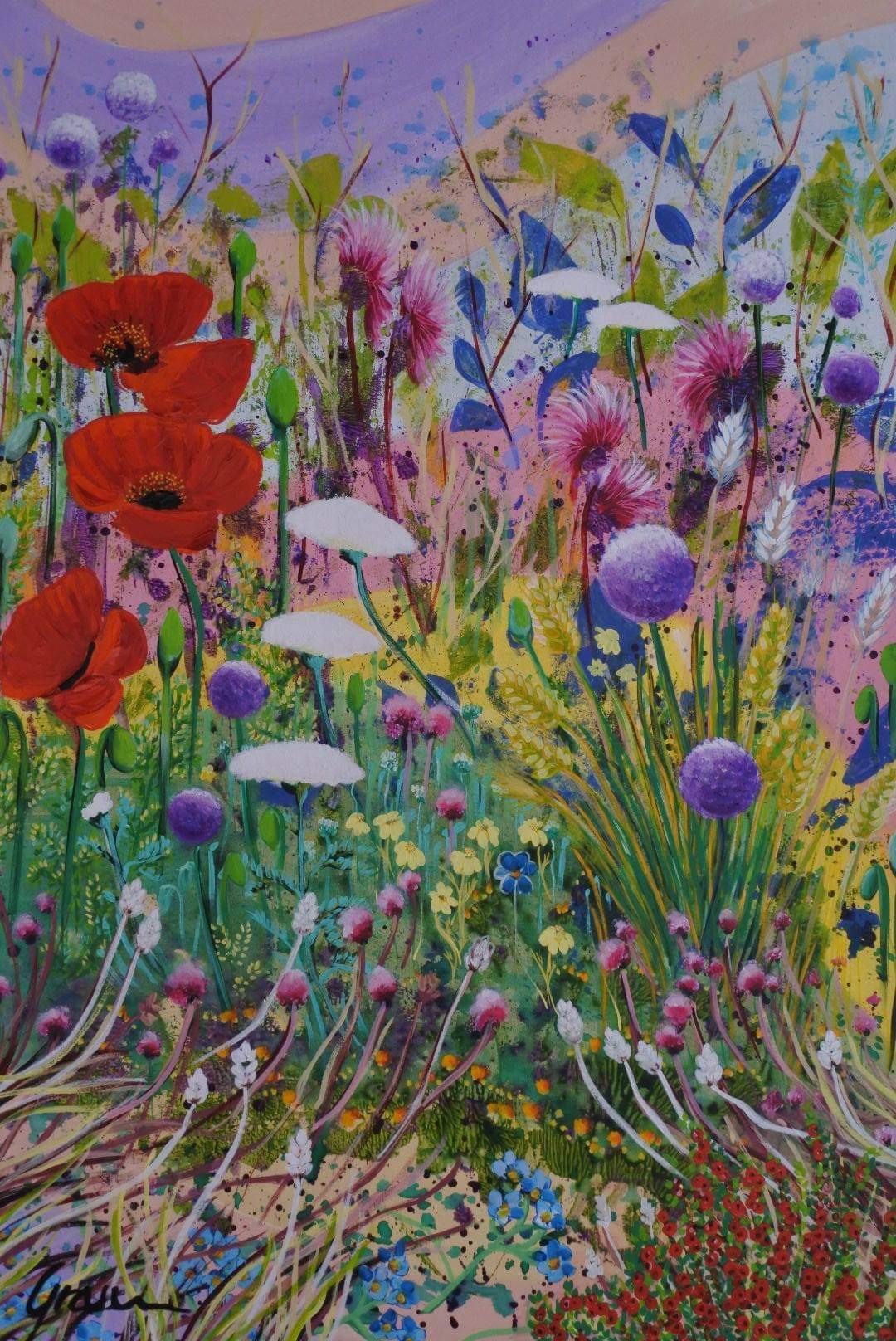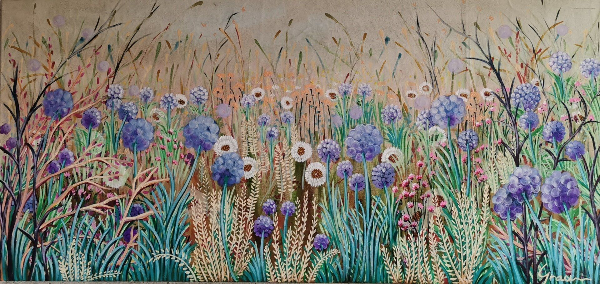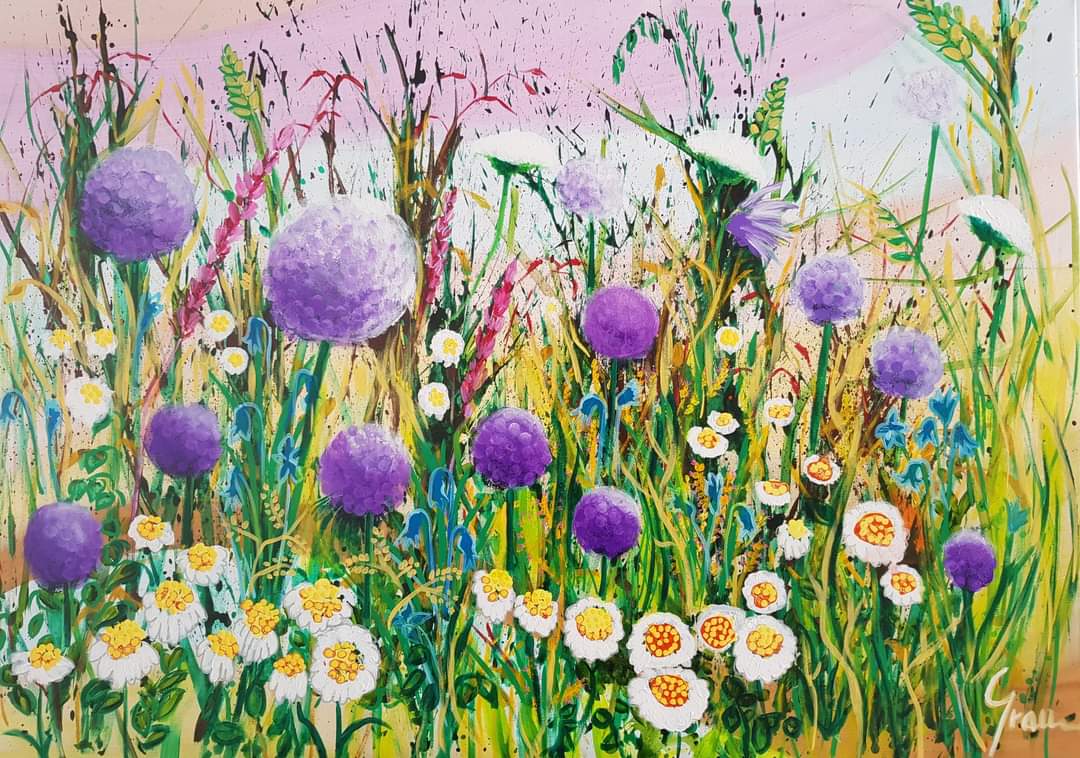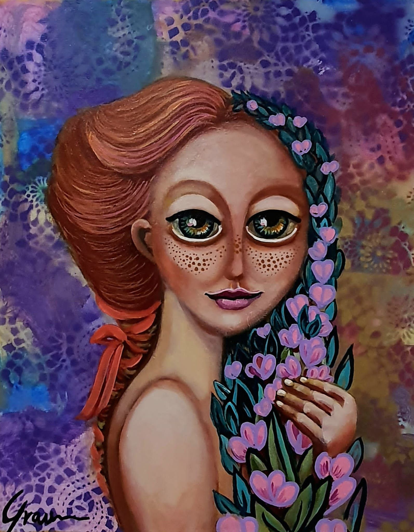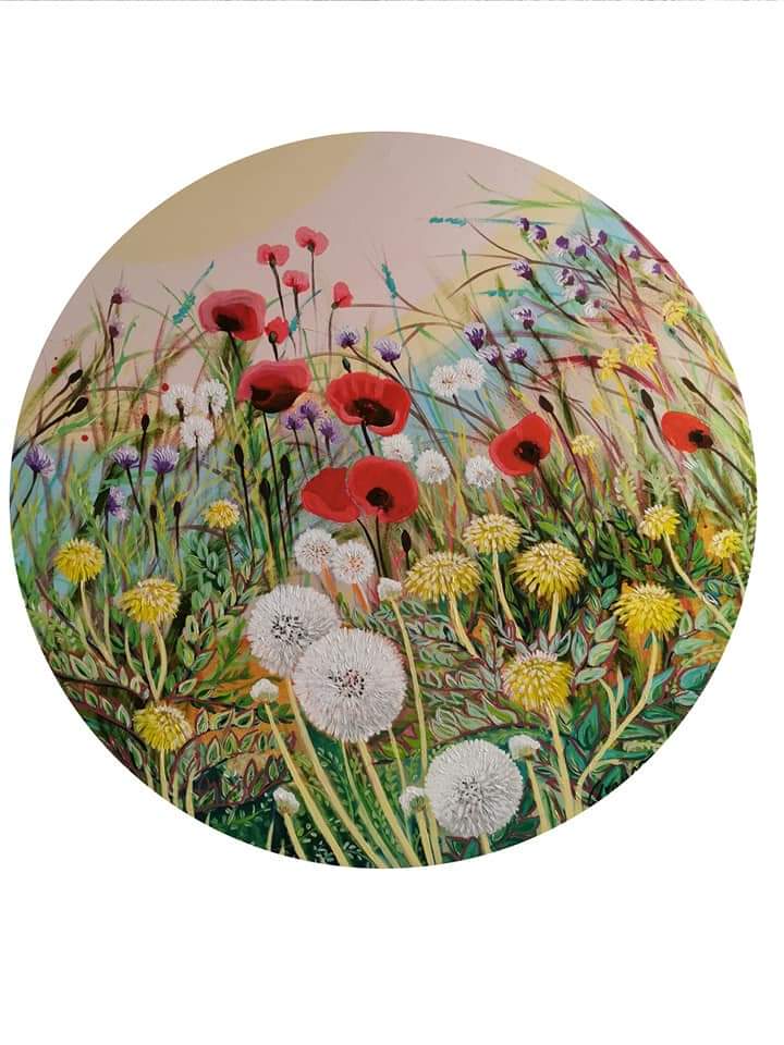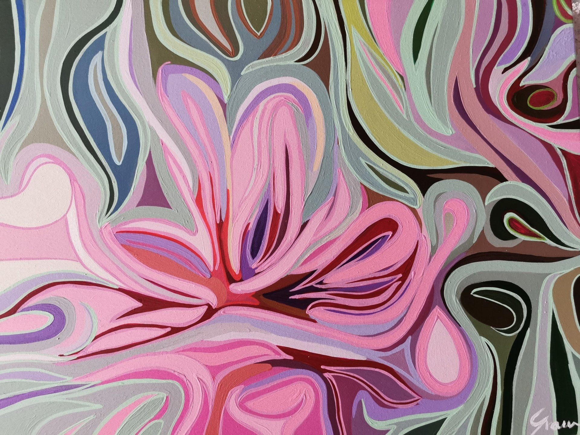 Per trobar-la ens hem de dirigir fins al Vendrell. Poc abans de la pandèmia va instal·lar el seu estudi a una casa cedida per un amic. L’immoble portava tancat més de trenta anys i ara s’ha convertit en un espai ple de vida, amb centenars de pinzells i gammes de colors vius a tort i a dret. Ben segur que el llimoner situat a l’exterior és una gran font d’inspiració. Aquí el temps s’atura i xoca amb la incansable pluja d’idees que constantment brolla de l’artista, dia i nit. La primera confessió: “m’encanta pintar descalça, així que qualsevol catifa que trobo es converteix en part de l’estudi”.